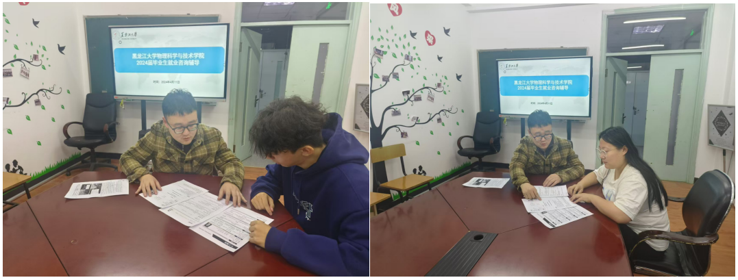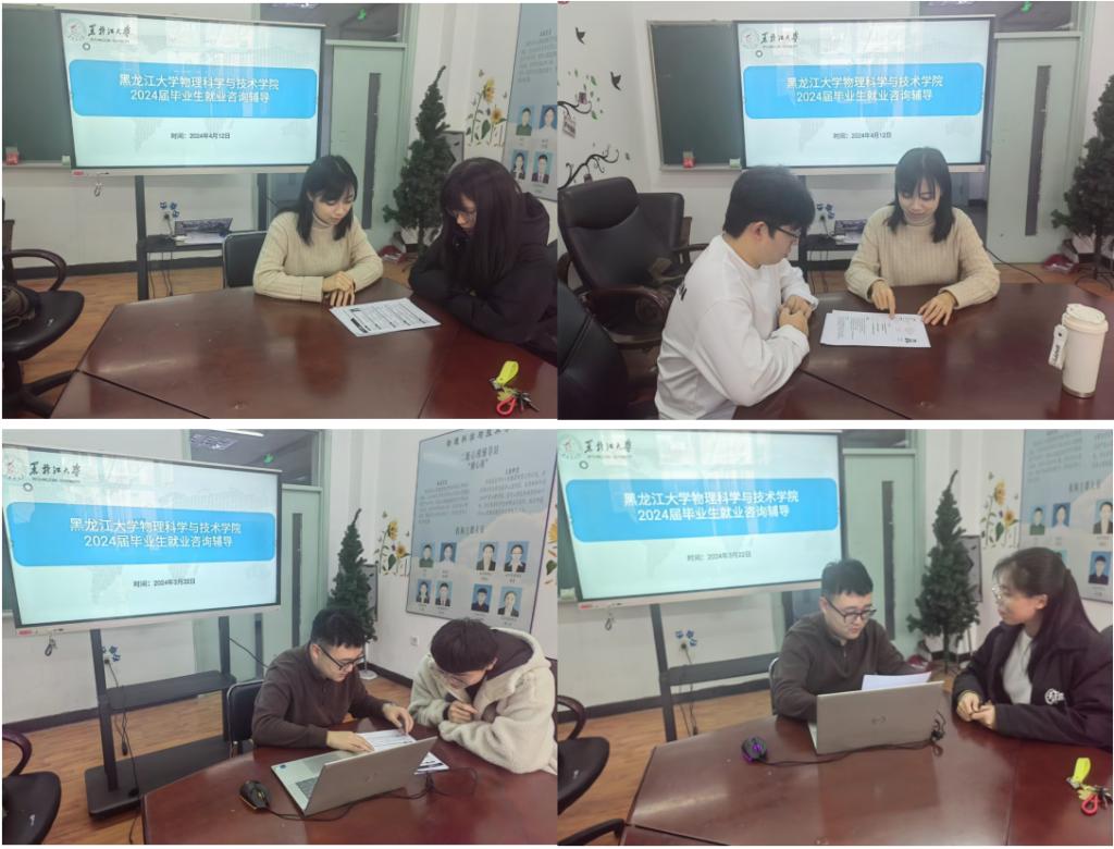 学院在实验楼210-1室建立就业咨询室,学院领导班子、任课教师及辅导员成立咨询师团队,定期对未就业毕业生开展团体咨询,并针对就业困难学生随时开展个体咨询,学院累计咨询次数80余次,咨询时长30小时。老师们根据各专业就业形势和历年就业情况,给同学们提出个性化的职业发展规划建议,帮助毕业生解决求职的困惑,并对同学们的简历进行了诊断与修改。从学生职业规划、专业就业形势、行业发展、学业状况、个性特征以及家庭情况等方面进行分析,引导同学们树立正确的就业观和成才观,积极参加招聘会,实现充分高质量就业。