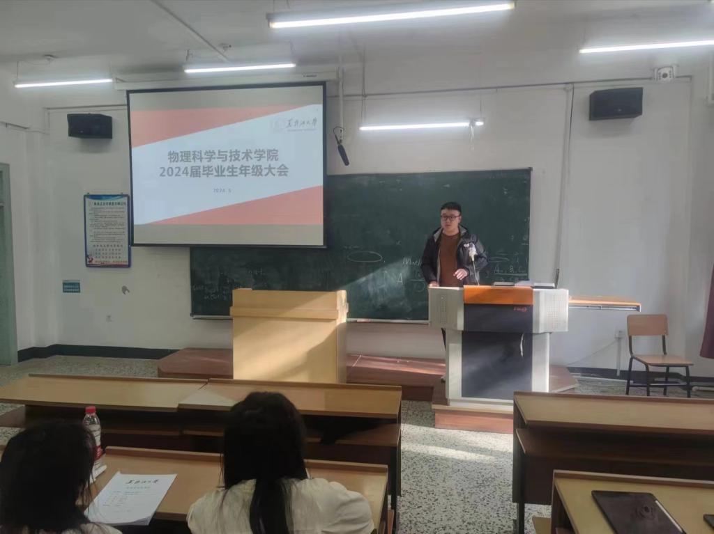 根据《黑龙江大学2024届毕业生离校教育活动方案》的要求,5月17日下午,学院于三号楼205室召开2024届毕业生年级大会暨主题班会,全体2024届本科毕业生参会,会议由毕业生辅导员王鹏达主持。