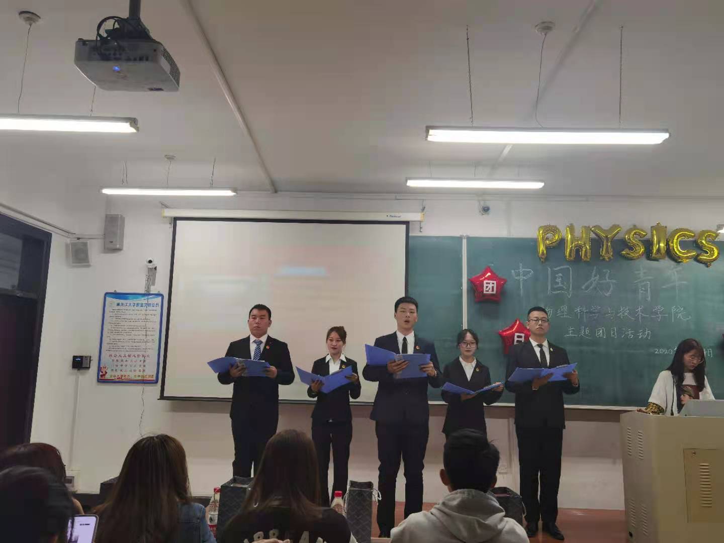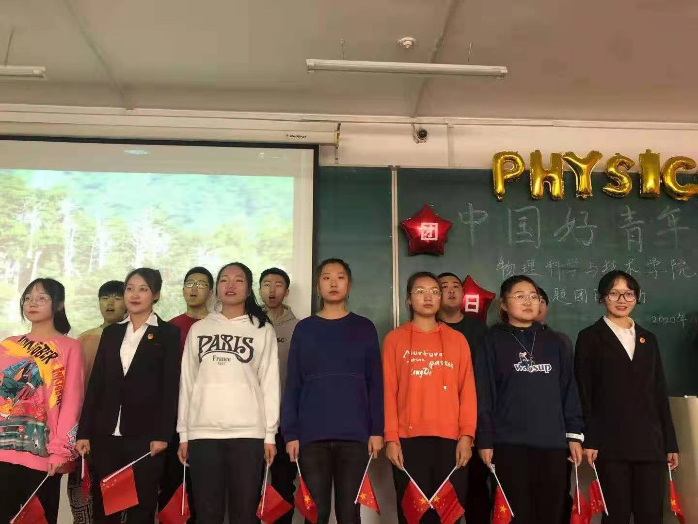 活动伊始,由物理科学与技术学院20级新生代表合唱的《华夏》与《我们都是追梦人》为本次团日活动拉开了序幕。