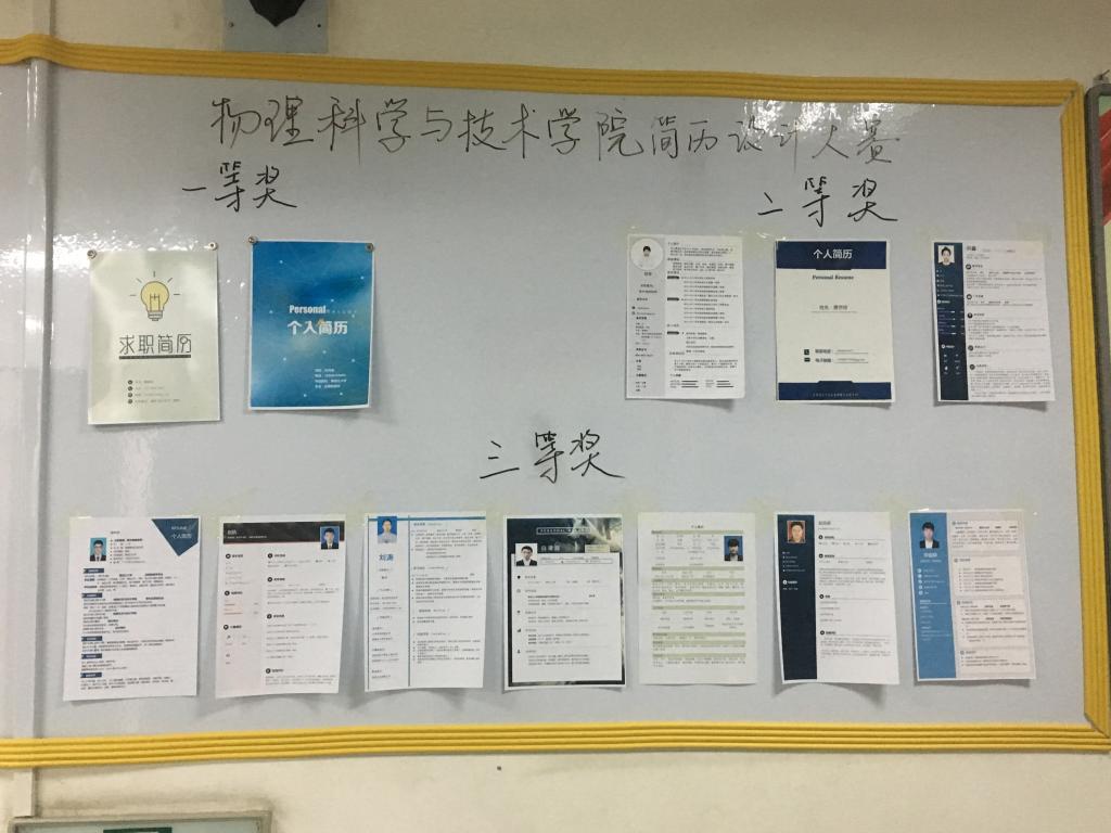 为提升学生求职能力,帮助学生了解职业需求,强化就业指导课程效果。我院于2018年5月3日举行了简历制作大赛。评委由物理学院党总支书记席国强老师、院团委书记王吉老师担任。