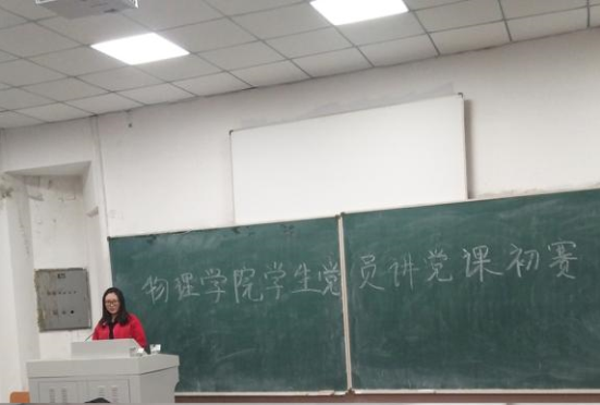 为提升学生党员理论水平,坚定理想信念,发挥党员先锋模范作用。2018年5月2日,物理科学与技术学院在1号教学楼104教室召开第二届学生党员讲党课大赛初赛。此次比赛由辅导员王吉老师和李佳睿老师担任评委,物理学院学生党支部2016级学生党员参加比赛,2017级入党积极分子观摩。