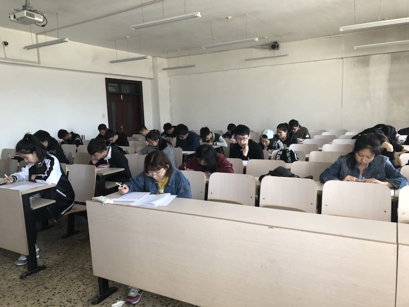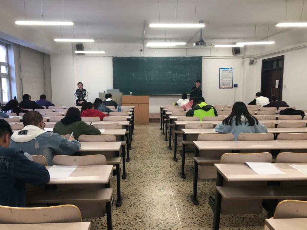 物理学院辅导员与高年级优秀学生干部利用课余时间讨论、研究、整理高等数学习题,并集合成册,分阶段考查2017级学生的高数学习情况。考试开始前,监考人员组织学生有序进入考场,同学们按照考试座位图依次入座。下午1:30模拟考试准时开始,监考人员下发试卷、答题卡、草稿纸等,2017级学生们均严格遵守考规考纪,认真答题。
