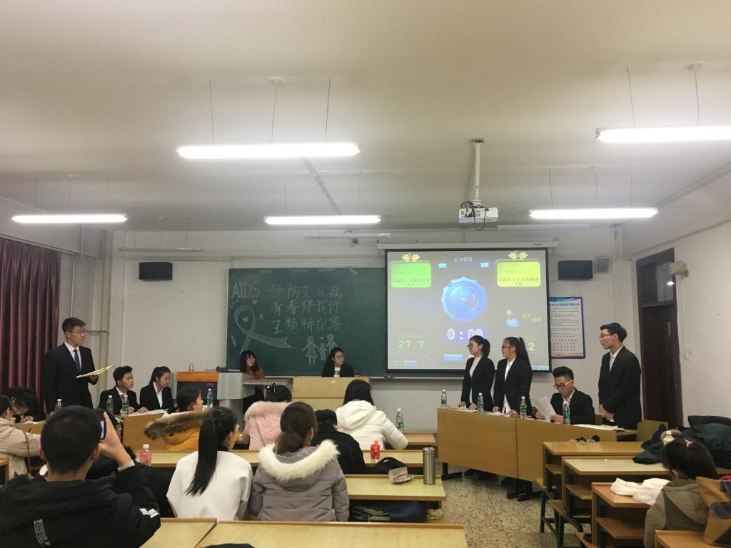 为丰富我院学生的课余活动,培养学生的思辨能力和语言表达能力。2017年12月14日下午4点,由我院举办的以“预防艾滋病,青春伴我行”为主题的辩论赛在汇文楼424教室顺利举行,此次比赛特邀黑大辩协主席代林,数学院领队郑丽菊,应用外语学院领队冯宇为本次比赛评委;邀请王吉老师,李佳睿老师以及物理院学生前来观赛。