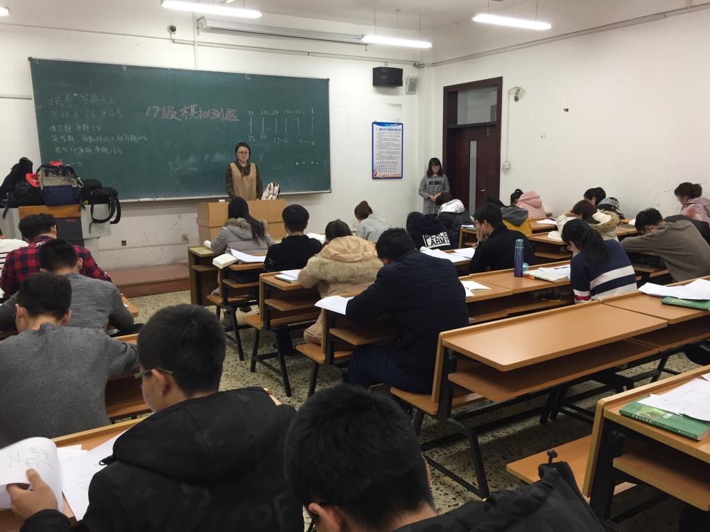 此次学科综合模拟测验由院团委老师和优秀学生干部负责出题、试卷印刷、监考、批卷、存档工作。考试开始前,考生有序进入考场,在监考人员的组织下,学生将包和手机交到讲台,由监考人员保管。考试开始,监考人员下发试卷、答题卡、草稿纸。所有学生均严格遵守考风考规,考试有序进行。