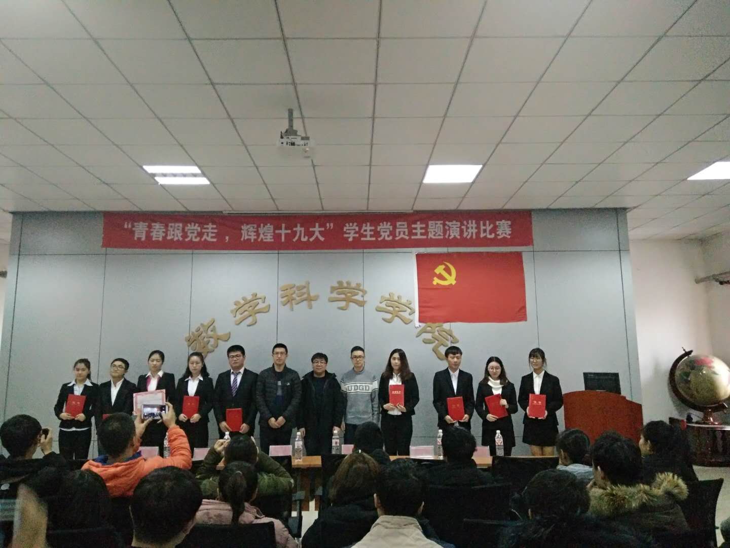 此次参赛的选手是来自三个学院的优秀学生党员。他们用饱满的精神、激昂的演说,讲述身边优秀青年党员的先进事迹,抒发了自己对党和祖国的热爱。他们用清晰的思路、理性地表达和强大的感染力征服了在场观众,赢得评委老师和同学们的阵阵掌声。最后评委老师对选手的精彩演说进行了现场评分并为获奖选手颁奖。此次演讲比赛物理科学与技术学院的梁湘菡同学和数学科学学院的王士琪同学拔得头筹,获得一等奖。她们用丰富的语言直击心灵,深入剖析党的章领,严谨分析当前形式,用她们的实力征服了评委老师与在场同学。通过此次演讲比赛,让学生们更加地了解党,相信党。相信在党的领导下,我们一定能传承党的精神,坚定党的信念,实现党的理想,为把祖国建设成为富强民主文明和谐美丽的社会主义现代化强国而奋斗。