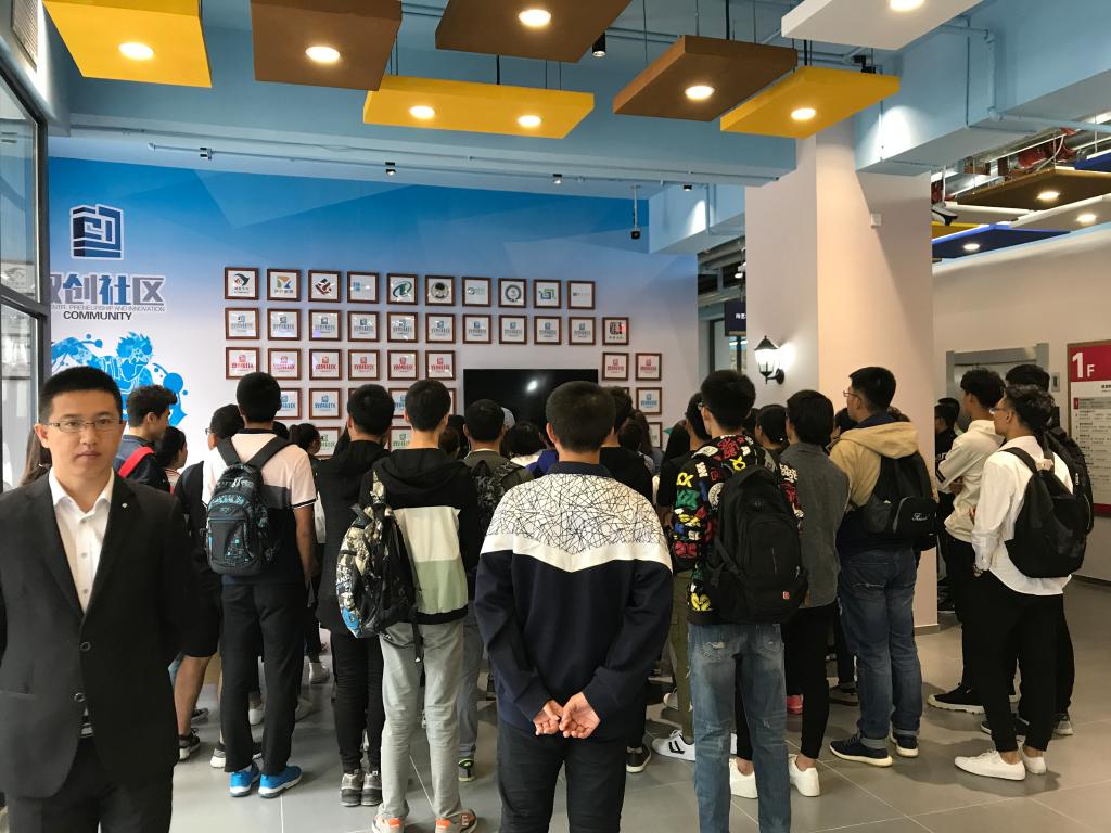 全体成员于8:30分在训练场集合完毕并一同步行前往孵化中心。在孵化中心内部,重点参观了双创社区。相关工作人员首先为大家播放了宣传片,简要介绍了孵化基地的创建目的——为大学生及想要创业却没有资源或场地的人提供帮助,同时为大学生提供免费的就业创业指导。