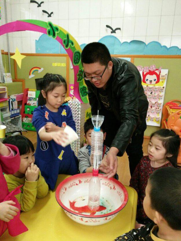 在老师的帮助下,让小朋友们加水,观察喷泉,体验实验的神奇之处。最后,在小朋友们依依不舍的眼神中,志愿者们结束了本次活动。