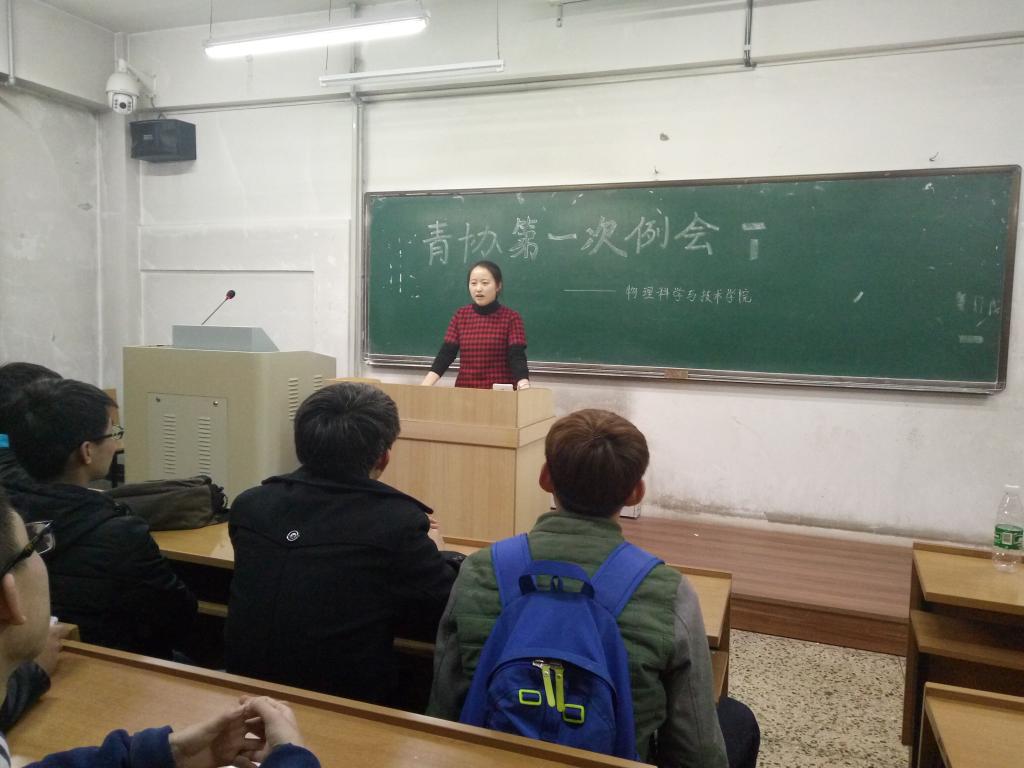 2016年3月17日晚,物理科学与技术学院青年志愿者协会总结大会在3号楼114教室召开,大会由院青协主席杨珍洪主持,全体青协成员参加。