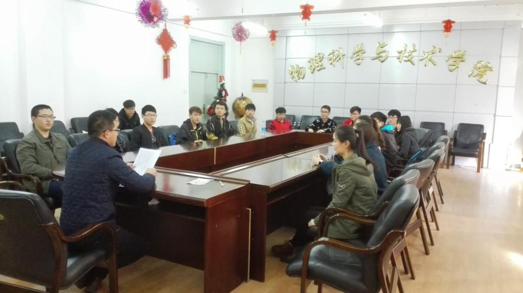 2016年3月23日下午一点整,物理科学与技术学院2015级学生干部座谈会在实验楼会议室顺利召开,参加本次会议的有院团委书记王吉老师以及15级全体学生干部。