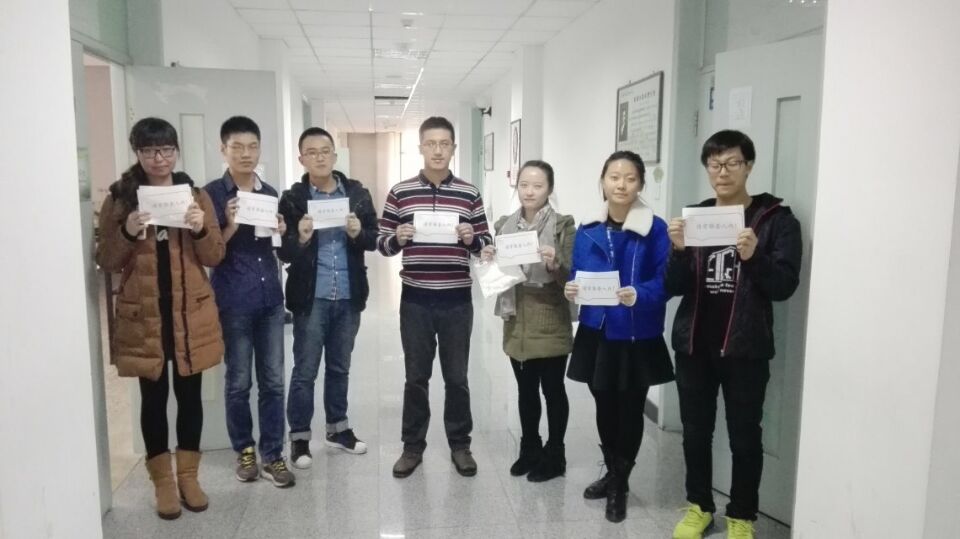 早在两周之前,物理科学与技术学院青年志愿者协会成员们就宣传标语的内容和logo样式展开了商讨和创意收集,几经修订,最终选定了最佳的宣传标语。准备工作完成之后,由院青年志愿者协会指导老师王吉老师和院青年志愿者协会主席杨珍洪依照方案,给每一个同学分配了任务。他们拿到裁剪好的标语之后,带着略微激动的心情,开始了今天的工作。王吉老师带着他们在每间实验室的门上张贴“请随手关灯”、“请穿鞋套入内”的标语。虽然这次活动比较累,但大家很开心。最后同学们检查彼此的工作,确保没有遗漏的地方,活动才正式宣告结束。