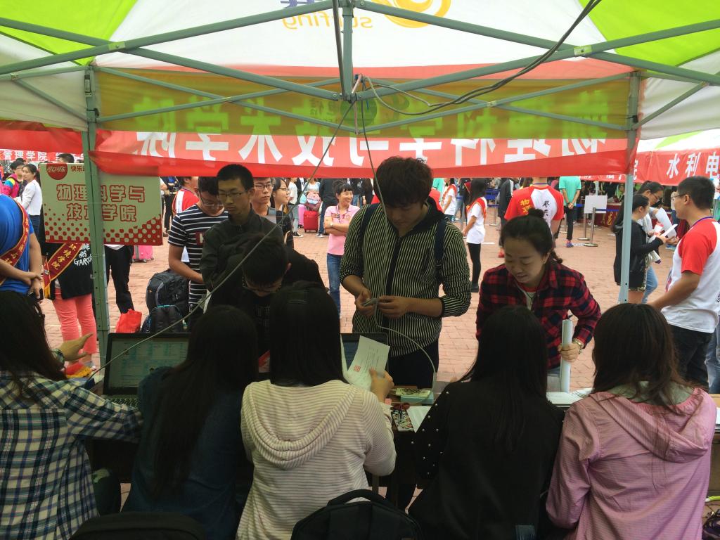 迎新期间,何颖校长、孙普男院长亲临迎新现场。在对迎新工作指导的同时,鼓励并表扬了在场的学生干部,2015年8月31日下午17时,物理科学与技术学院2015年迎新工作圆满结束。